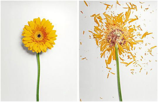 有人說(shuō),女孩最幸福的時(shí)刻之一就是收到美麗的鮮花,沒(méi)有女孩子不愛(ài)花。花兒在綻放的時(shí)候是如此絢爛美麗,凋零的時(shí)候往往讓人感到惋惜,我們常常不忍心看到花瓣凋零,更不忍看到花瓣破碎。其實(shí)破碎也是另一種美。攝影師Jon Shireman似乎對(duì)破碎的花非常感興趣,他將采集來(lái)的花經(jīng)過(guò)特殊處理再將花瓣擊碎,拍攝了一組打破傳統(tǒng)的的靜態(tài)又不失美感的攝影作品,破碎的花也有與眾不同的美麗。