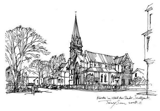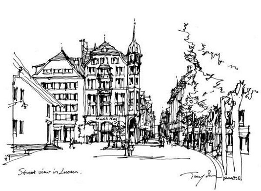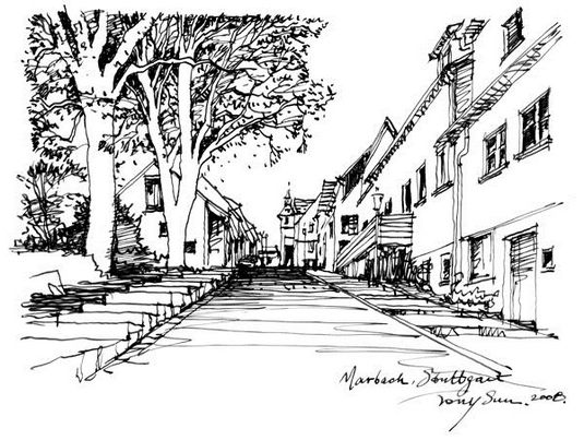 碳素的黑色,筆尖在紙上游走,摩挲著,勾勒出一幅幅畫卷。筆下的場(chǎng)景和圖片上畢竟不同,但有著我的情愫,滿滿縈繞。